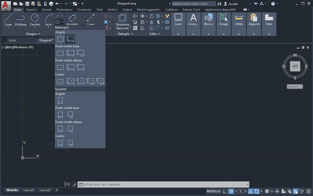 Questi comandi visualizzano ora un'anteprima, che agevola il posizionamento dei rettangoli nell'area di disegno. Sono stati migliorati anche per supportare l'input quota e rendere più semplice la specifica di base e altezza.