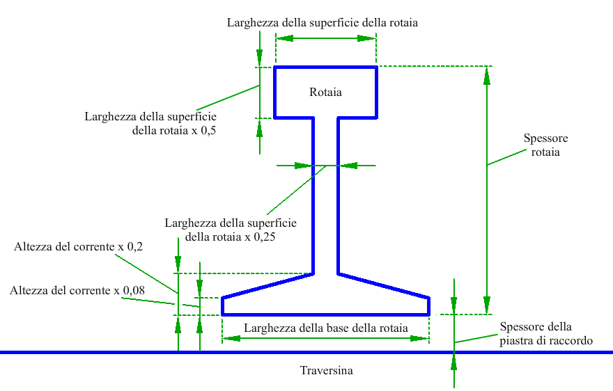 | Spessore della piastra di raccordo | Spessore della piastra di raccordo che è anche la distanza tra parte inferiore della rotaia e la parte superiore della traversina. | Numerico, non negativo |
