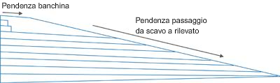| Tipo scarpata sottobase | Selezionare se mantenere il collegamento di scarpata su una pendenza fissa con larghezza variabile, oppure se mantenerlo ad una larghezza fissa con pendenza variabile | Elenco di selezione: a) Mantieni pendenza, regola larghezza, b) Mantieni larghezza, regola pendenza | Mantieni pendenza, regola larghezza |