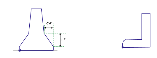Vengono inseriti in sequenza fino a 12 collegamenti alle larghezze e alle deflessioni verticali specificate. Le forme non vengono chiuse automaticamente. È necessario includere un collegamento di chiusura.