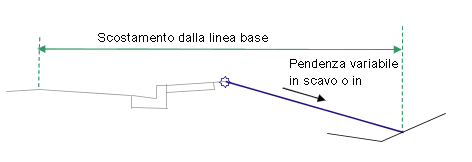 Può essere utilizzato per sostituire il valore fisso Scostamento scarpata e collegare lo scostamento scarpata ad un tracciato di scostamento. Come obiettivi per la specifica dello scostamento è possibile utilizzare i seguenti tipi di oggetti: tracciati, polilinee, linee caratteristiche o figure di rilievo. |
