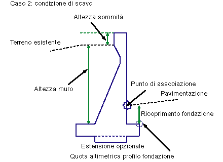 | Ricoprimento fondazione | Lo spessore di ricoprimento dalla parte superiore della fondazione alla linea di finitura sul lato posteriore del muro in rilevato oppure all'aggancio se in scavo. | Numerico |