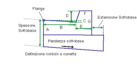 Pendenza cunetta nel nuovo componente sezione tipo cordolo e cunetta |