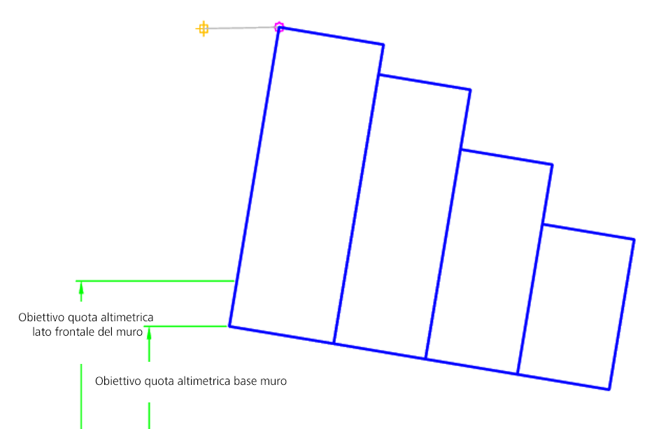 | Parte inferiore del muro | Può essere utilizzato per impostare la quota altimetrica della parte inferiore del muro. Come obiettivi per la specifica della quota altimetrica è possibile utilizzare i seguenti tipi di oggetti: profili, polilinee 3D, linee caratteristiche o figure di rilievo. | Facoltativo |