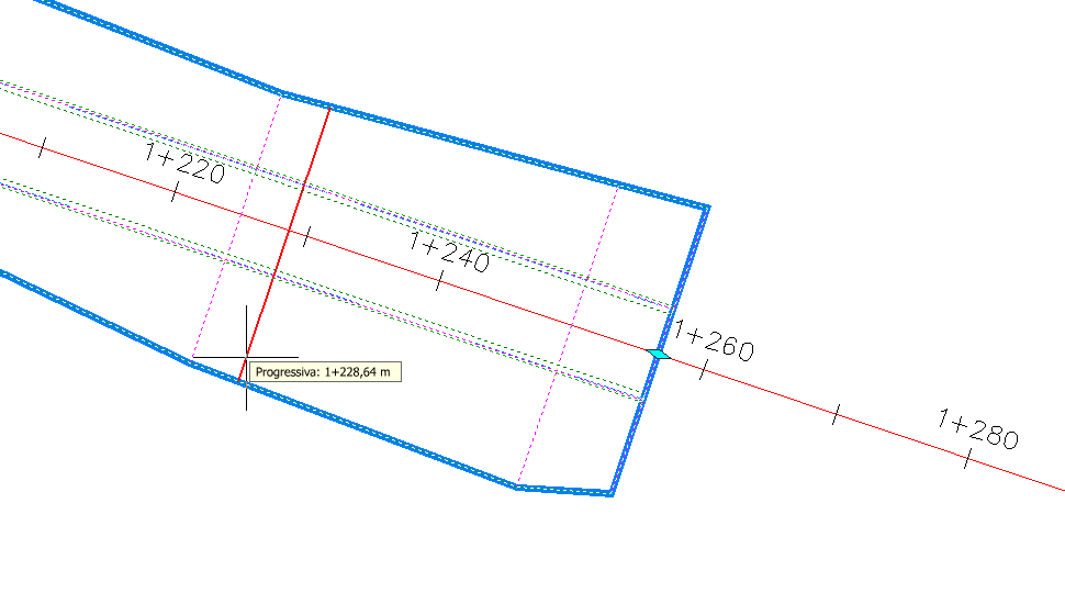 Eseguire lo zoom in avanti e fare clic sulla progressiva (oppure immettere il valore di progressiva) in corrispondenza del punto in cui si desidera dividere la regione.