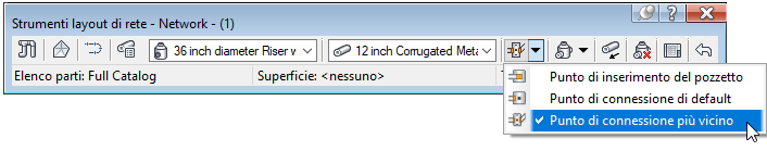 È possibile specificare il tipo di punti di connessione da utilizzare quando si esegue il layout delle reti di condotte.