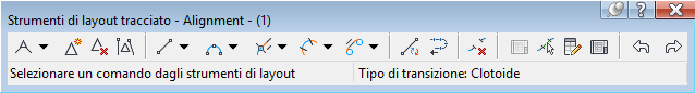 Il nome del tracciato attualmente selezionato viene visualizzato nella parte superiore della barra degli strumenti. Facendo clic sull'icona il comando corrente viene visualizzato nella parte inferiore della barra degli strumenti. La barra degli strumenti resta aperta se si modifica tramite grip il tracciato o si immette un altro comando. Si chiude se si elimina il tracciato attualmente selezionato o si fa clic sul pulsante X nell'angolo in alto a destra della barra degli strumenti.