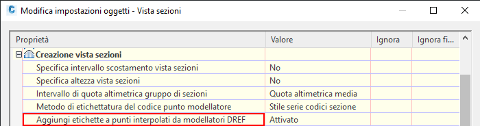 Per ulteriori informazioni su questa impostazione, vedere la finestra di dialogo Modifica impostazioni oggetti - Vista sezioni. Per ulteriori informazioni sui punti di etichettatura del modellatore, vedere Come etichettare i codici punto modellatore nella vista sezioni.