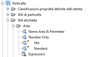 Anteprima dello stile di etichetta personalizzato per l'area della particella