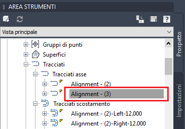 Il comando Visualizza nel prospetto è disponibile per tracciati di riferimento, tracciati di scostamento e tracciati del cordolo esterno dell'intersezione ed è disponibile nelle raccolte Tracciati di intersezione e Quadranti intersezione.