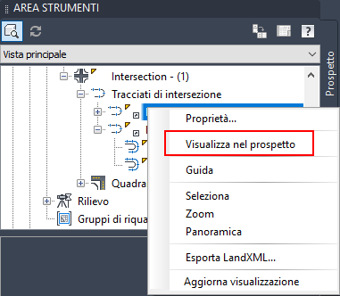 Un altro oggetto disponibile nella raccolta Tracciati di intersezione è il comando Visualizza nel prospetto.