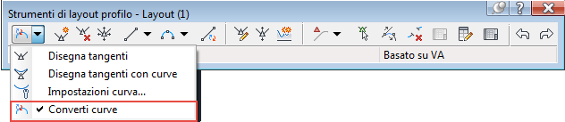 2. Nella barra degli strumenti Strumenti di layout profilo, fare clic su Converti curve .