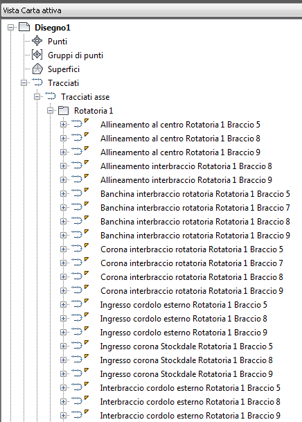 Utilizzare la raccolta Rotatoria nella struttura Prospetto per accedere alle rotatorie in un disegno.