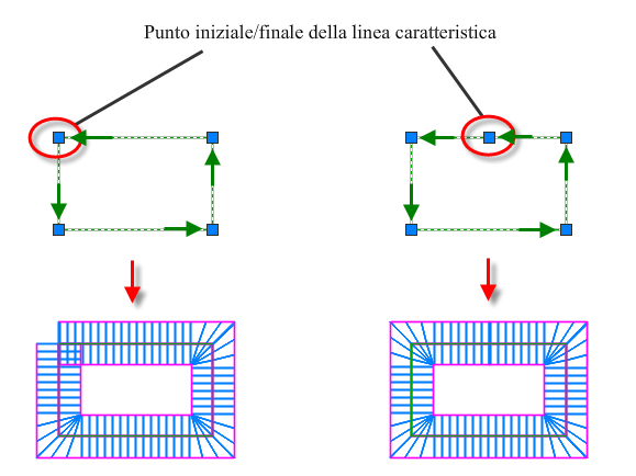 Per ovviare a questo problema, è consigliabile disegnare la linea caratteristica in modo che abbia inizio e finisca in corrispondenza di una posizione diversa da quella di un angolo come mostrato nell'illustrazione seguente a destra.