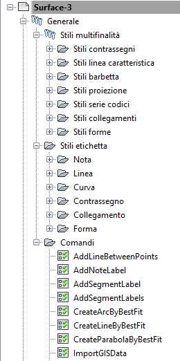 Gli oggetti Condotte e Superficie possono condividere gli stili Render nella raccolta Stili multifinalità generale, mentre Modellatori e Scarpata condividono gli altri stili nella cartella.
