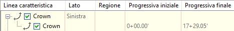 Le linee caratteristiche che vengono estratte da un modellatore vengono posizionate a partire da una progressiva 0+00, a prescindere dalla progressiva iniziale della regione del modellatore.