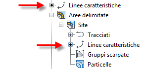 È possibile creare linee caratteristiche all'interno o all'esterno di un'area delimitata. Le linee caratteristiche create al di fuori di un'area delimitata compariranno in una raccolta di Linee caratteristiche all'interno del Prospetto. Le linee caratteristiche create all'interno di un'area delimitata vengono visualizzate nella raccolta Linee caratteristiche all'interno della raccolta Area delimitata.