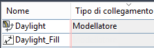 Quando una linea caratteristica viene collegata al modellatore principale, nella colonna Tipo di collegamento nella vista elemento Linee caratteristiche in Prospetto viene visualizzato Modellatore. Se la linea caratteristica non è collegata, la colonna Tipo di collegamento è vuota. Inoltre, vengono utilizzate diverse icone per distinguere le linee caratteristiche.