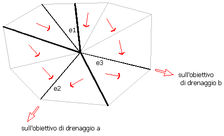 Nella figura seguente, i lati del canale e2 ed e3 fluiscono verso obiettivi di drenaggio diversi.