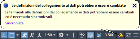 Quando i riferimenti diventano obsoleti rispetto ai collegamenti ai dati, viene visualizzato un messaggio che richiede di sincronizzare i riferimenti. Fare clic su Sincronizza per aggiornare i riferimenti.