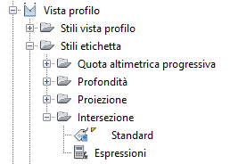 Oggetti intersezione utilizzano gli stili etichetta intersezione della vista profilo.