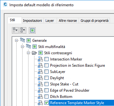 Selezionare le caselle di controllo relative agli stili e alle impostazioni a cui fare riferimento per default. Nell'esempio seguente è selezionato solo Stile contrassegno modello di riferimento.