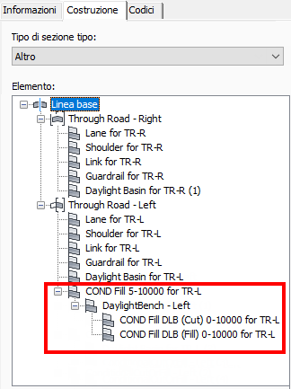 | Pendenza % layout | 4.000:1 | Specifica la pendenza % della linea disegnata per rappresentare questo componente sezione tipo in modalità layout. Questo parametro, insieme al parametro Larghezza layout, consente di posizionare il componente sezione tipo Sterro o riporto condizionale e i componenti sezione tipo ad esso associati. Non viene tuttavia visualizzato né influisce sul tipo modellatore. |