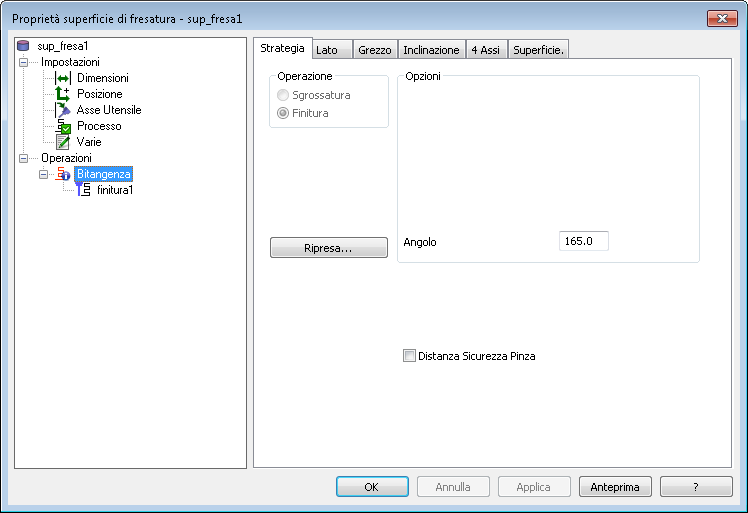 Distanza sicurezza pinza — Spezza il percorso utensile dove la pinza o il gambo collidono con la superficie della parte o con la superficie limite o con il grezzo non lavorato. Quando selezionati, gli attributi Distanza sicurezza pinza e Distanza sicurezza gambo sono visualizzati sulla scheda Fresatura per l'operazione.