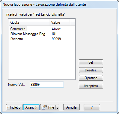 Il codice NC per questa feature Test Lancio Etichetta è: