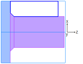 La boundary della feature di tornitura (rappresentata in blu scuro), come impostazione predefinita racchiude l'intera feature.