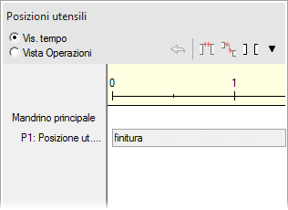Usare la Vista tempo per mostrare una sequenza temporale di operazioni per ciascuna posizione utensile nel documento.