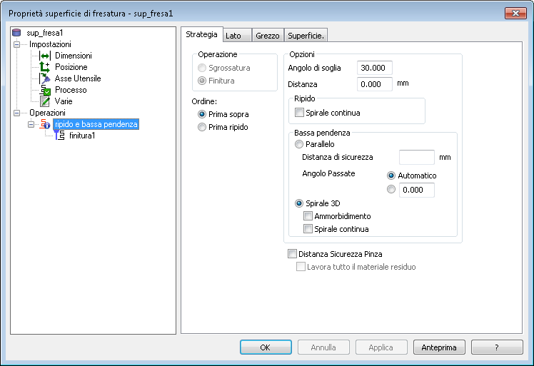 Ordine — Determina l'ordine in vengono lavorate le porzioni ripido e bassa pendenza.