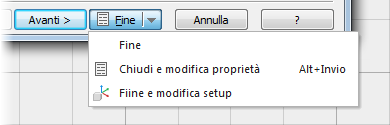 Il pulsante Fine chiude il wizard Grezzo e crea il grezzo definito. Fare clic sulla freccia verso il basso per specificare come funziona il pulsante.