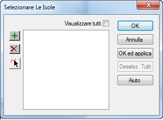 Per visualizzare la finestra di dialogo Seleziona isole, fare clic su Isole sulla scheda Dimensioni della finestra di dialogo Proprietà feature fresatura.