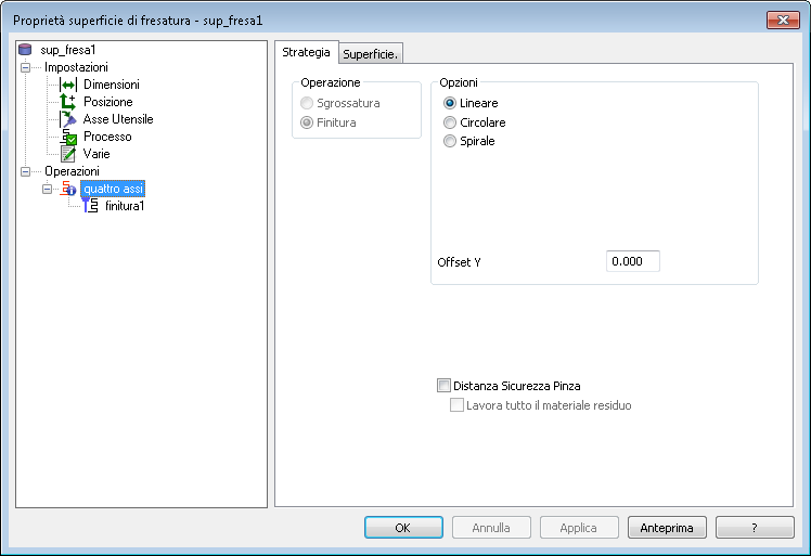 Offset Y — Inserire una distanza per evitare il taglio nel centro dell'utensile.