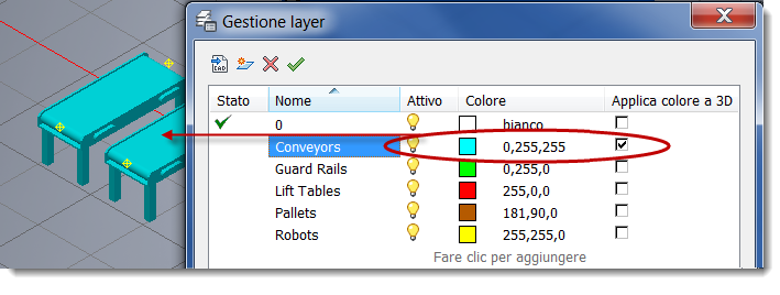 È inoltre possibile impostare un layer come corrente utilizzando la finestra di dialogo Gestione layer.