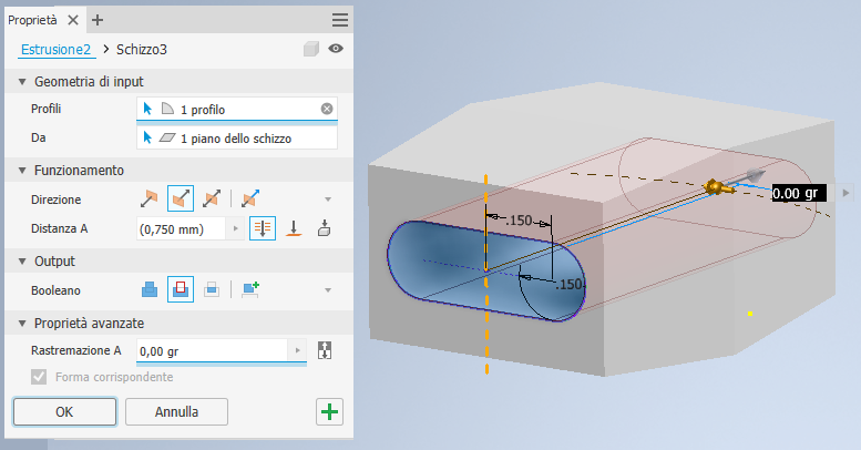 Oltre al gruppo Proprietà, il comando Sweep supporta ora l'estrusione di un solido.