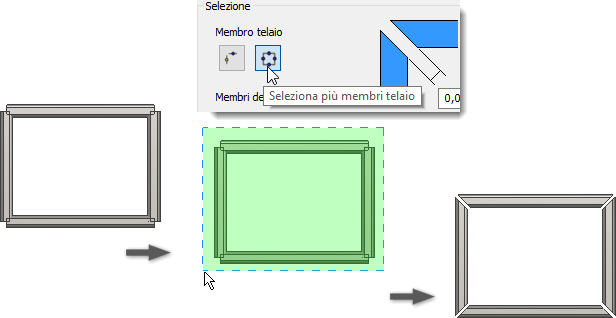 Per ulteriori informazioni sulle opzioni Angolo retto e Incavo, vedere Modifica o applicazione dei trattamenti estremità ai telai.