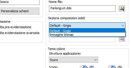 Seziona composizioni solidi è possibile specificare una mappa di composizione da utilizzare con le facce di chiusura utilizzate nelle viste di sezione del modello. Il valore di default è il colore grigio. Per utilizzare un altro colore, creare un'immagine e selezionarla per utilizzarla con Seziona composizione solidi.