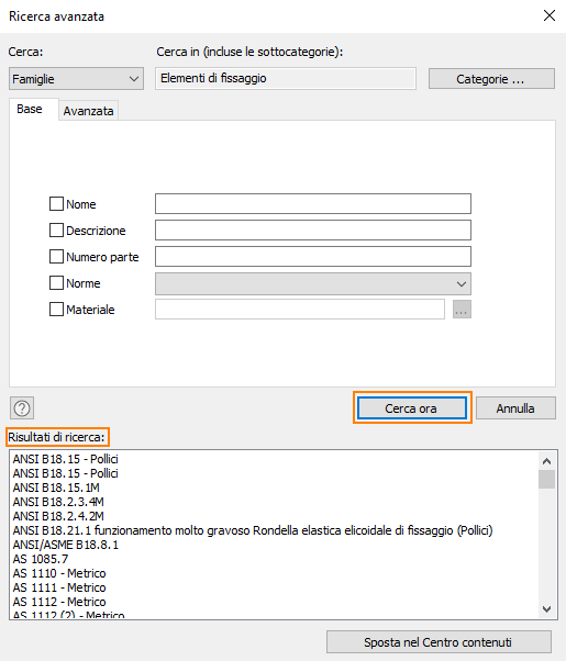 Inoltre, il pulsante Ricerca ora viene attivato automaticamente quando si accede alla finestra di dialogo Ricerca avanzata. Eseguire rapidamente la ricerca premendo INVIO dopo aver specificato il criterio di ricerca. Nel campo Risultati di ricerca vengono visualizzate le informazioni relative alla ricerca attiva.