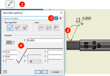 Maggioranza indica che il simbolo specifica le caratteristiche di superficie standard per il disegno.