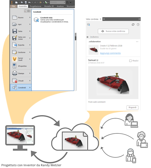 Le viste condivise forniscono un modo migliore per consentire a progettisti, ingegneri e artisti degli effetti visivi di ottenere un feedback sul lavoro in corso, semplificando e accelerando i cicli di revisione. È possibile utilizzare Viste condivise per condividere viste 2D o 3D del lavoro online e visualizzare commenti direttamente nel prodotto su cui si sta lavorando. Con le viste condivise, qualsiasi revisore può rivedere e aggiungere commenti online tramite Autodesk Viewer. Evitano alle parti interessate la necessità di installare un visualizzatore specifico e forniscono potenti strumenti di revisione e di aggiunta dei commenti per ottenere feedback dettagliati. Poiché le viste condivise sono rappresentazioni visive che scadono dopo 30 giorni, i progetti o i modelli nativi sono sempre protetti. Questo offre ai rispettivi autori un modo per separare chiaramente il lavoro non completato che viene condiviso per scopi di feedback dai risultati finali più formali e permanenti.