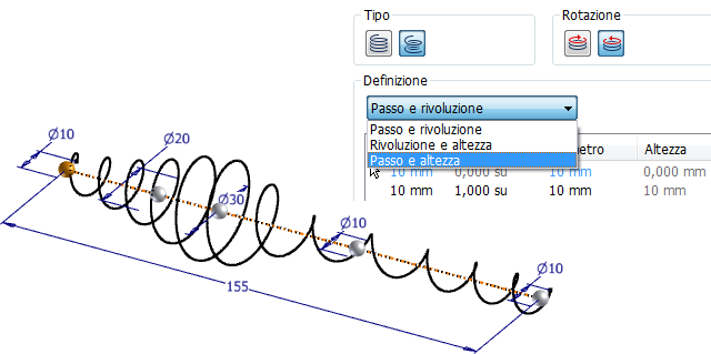 Il comando Curva elicoidale è stato migliorato per semplificare la creazione di un'elica a passo variabile.