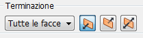 Il pulsante Inverti terminazione viene sostituito con i pulsanti Direzione 1 e Direzione 2. La distanza simmetrica è disponibile solo per il tipo di foro Uniforme - Foro semplice - Tutte le facce.