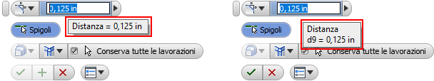 Nei campi relativi ai valori vengono ora visualizzati il nome del parametro nella descrizione comandi. Quando si posiziona il cursore sul parametro, il nome viene visualizzato insieme al valore.