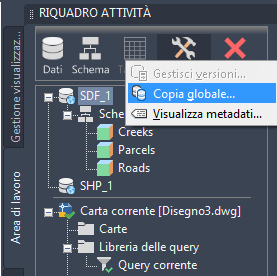 Copiare il layer Roads dal formato SDF nel formato SHP utilizzando la funzionalità Copia globale.
