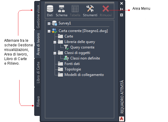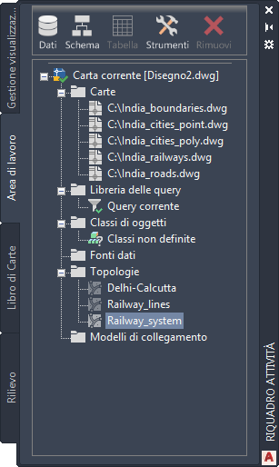 La scheda Area di lavoro consente di gestire le fonti dati incluse nella Carta corrente.
