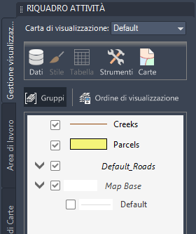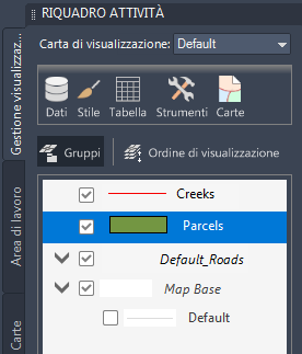 La scheda Gestione visualizzazioni mostra i layer nella Carta corrente.