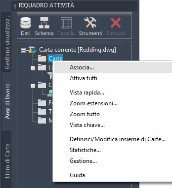 Associare le Carte dalla scheda Area di lavoro del riquadro Attività.
