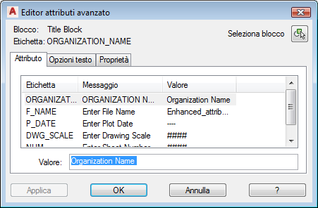 Fare doppio clic sul riquadro del cartiglio per visualizzare l'Editor attributi avanzato.